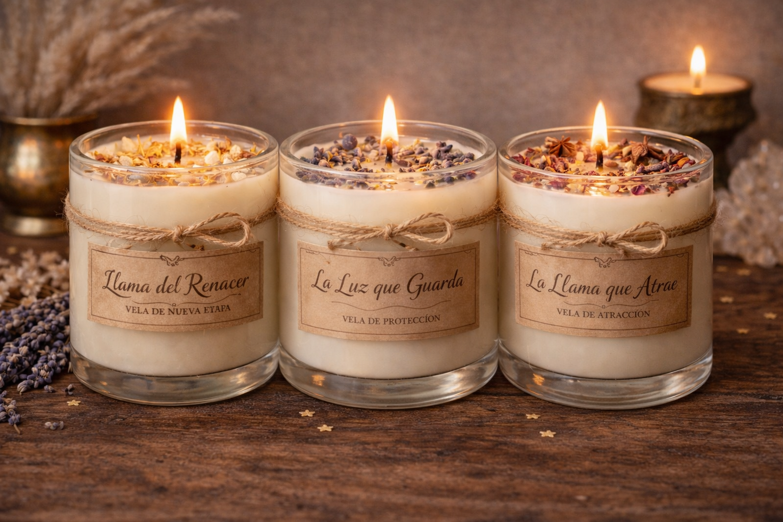 Cada vela representa una energía distinta, pensada para usarse juntas o por separado, según el momento vital en el que te encuentres.